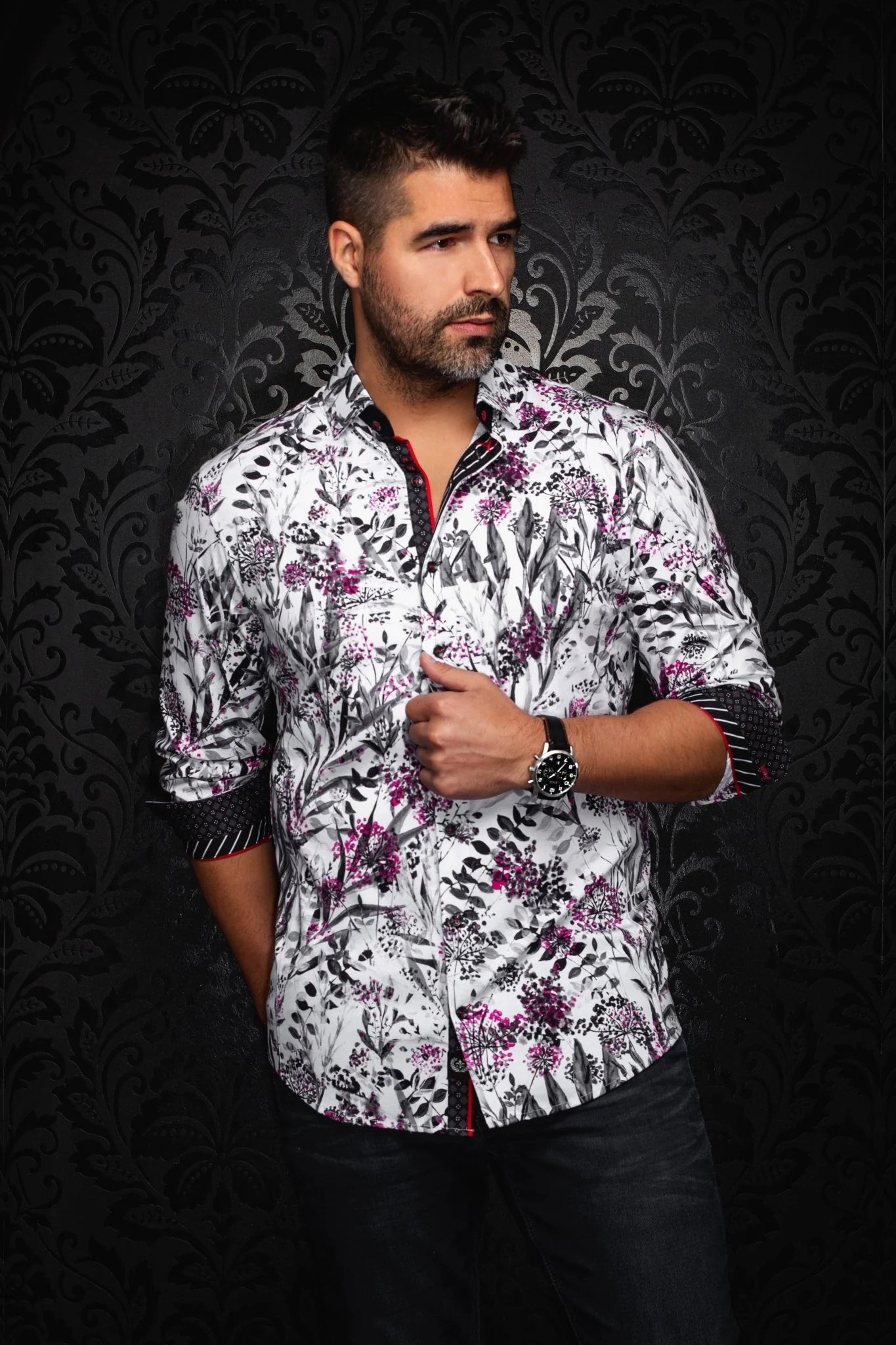 THIS IS A COLLECTION OF COMFORTABLE, PERFORMANCE STRETCH, FASHIONABLE DRESSY AND CASUAL SHIRTS. STAND OUT FROM THE CROWD, THANKS TO AU NOIRS CLEAVER USE OF CONTRASTING PATTERNS AND SOPHISTICATED DETAILS. COMFORTABLE WITH A HIGH QUALITY, PERFORMANCE STRETCH COTTON FABRIC.